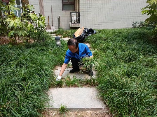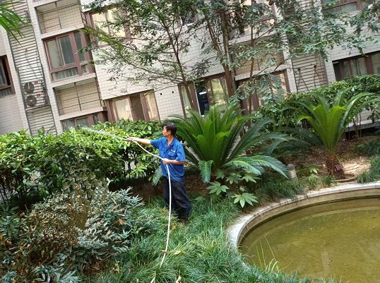 在这个夏天,为维护小区绿化景观,管理处全员出动,绿化人员负责对园区内各类植物按规范进行管理,凭借熟练掌握的各类植物绿化美化知识和技术,精心种植和养护花草树木,将绿篱、草坪修剪平整,乔木、灌木树形修剪合理,形态优美。客服人员负责养护区域内植物移栽、施肥、松土、浇灌、修剪、防止枯死、病虫害防止、植物支撑加固、清理、搬运等工作。保洁人员配合绿化人员根据实际需要和不同植物的物侯期,继续新种和补栽部分草木、宿根、观花、及观叶植物,对于干枯死掉的迅速清理,遮挡了窗户的植物进行修剪,对草坪里的杂草进行清除,及时松土除杂草,做好病虫害的防护工作,消灭各种成虫和虫卵。