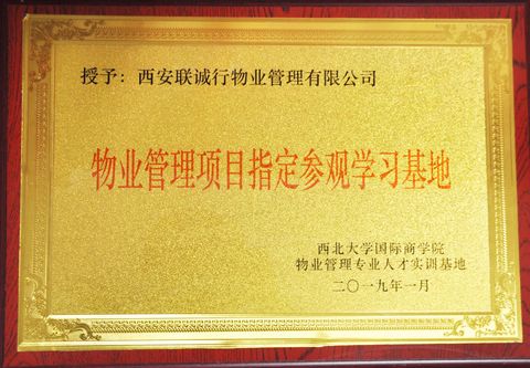 2019年 西北大学国际商学院物业管理专业人才实训基地“物业管理项目指定参观学习基地”