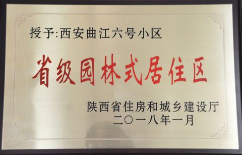 2010年 曲江6号被陕西省住房和城乡建设厅授予“陕西省物业管理示范住宅小区”称号