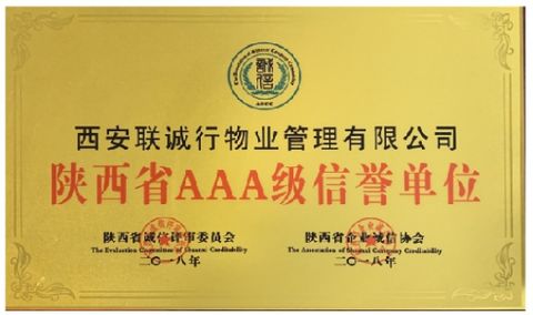 2018年 陕西省AAA级信誉单位